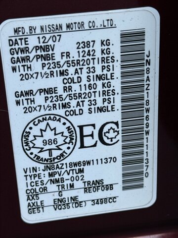 VIN: JN8AZ18W69W111370