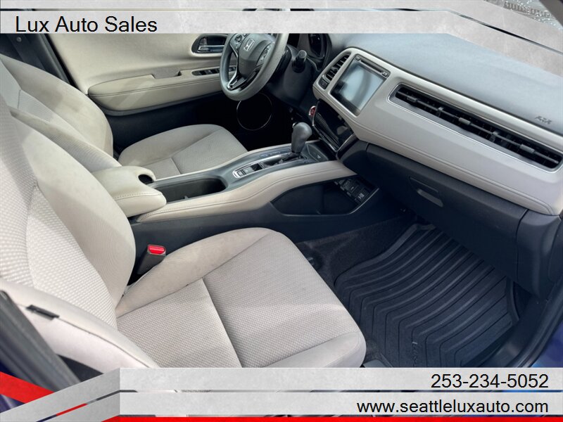 Discover the perfect blend of style, comfort, and practicality with this stunning 2016 Honda HR-V EX. With its striking Blue exterior and sophisticated Gray cloth interior, this compact SUV is designed to turn heads while providing a comfortable ride for both driver and passengers. With an impressive mileage of below 28,000 miles, averaging less than 3,000 miles per year, this vehicle is a remarkable find for anyone seeking reliability and value.