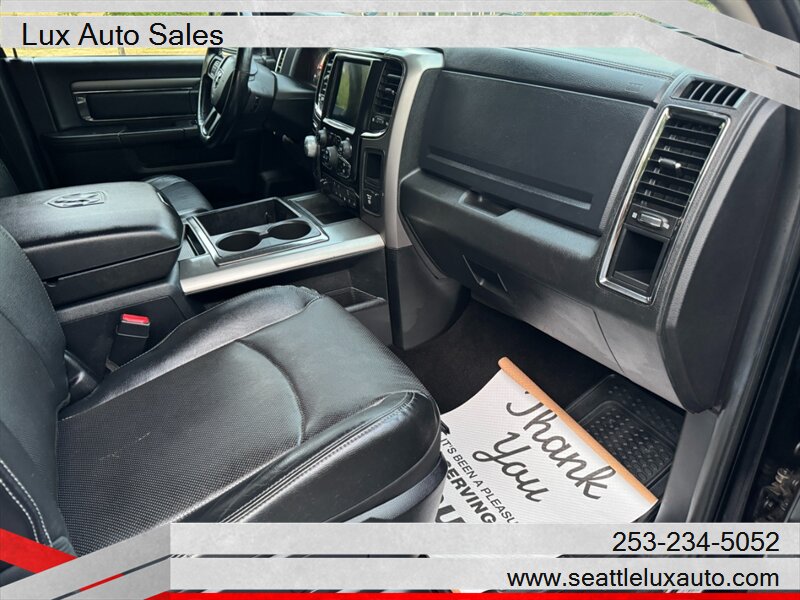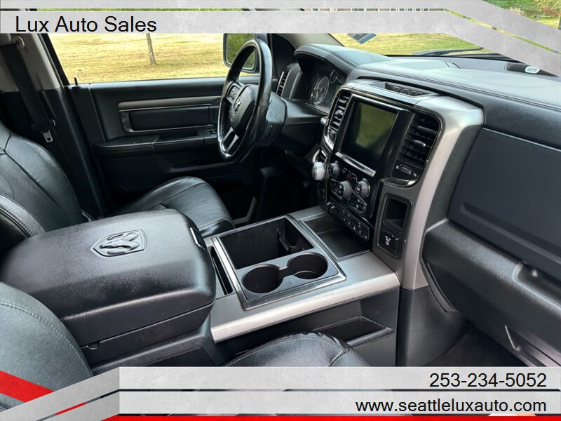 Dominate the road in the powerful 2014 RAM 1500 Sport with a roaring HEMI 5.7L V8 engine delivering an impressive 395hp and 407ft. lbs. of torque. This beast comes in sleek Black exterior paint, exuding strength and style, while the Black leather-trimmed interior offers a luxurious driving experience.