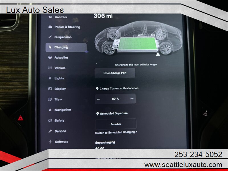 - Battery and charging: Factory 85 kWh battery pack with Tesla Supercharger compatibility and standard charging conveniences for home and public charging networks. Onboard systems manage energy use and provide range/charging information through the touchscreen.
