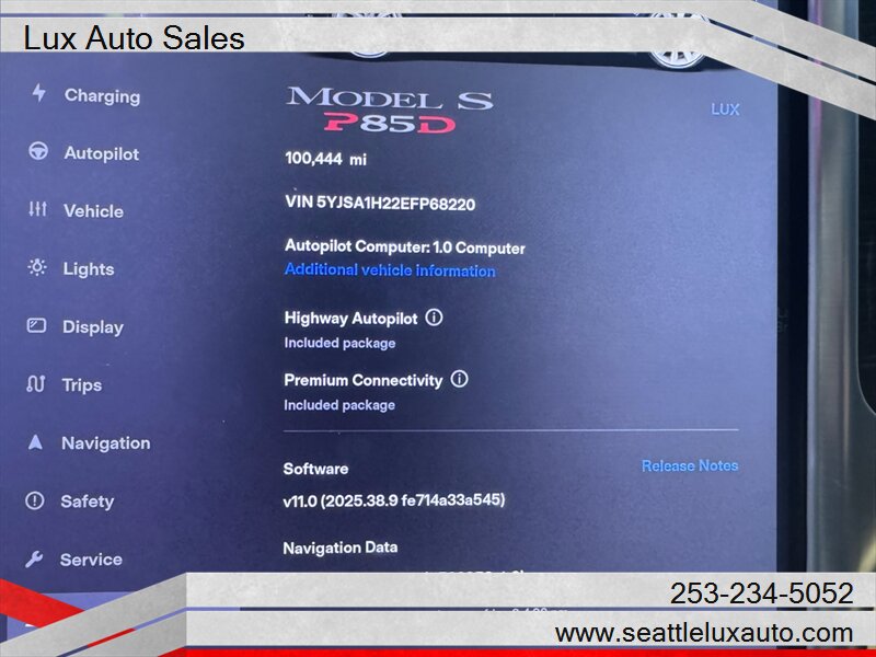 This 2014 Model S P85D offers a compelling combination of thrilling performance, upscale interior materials, practical seating flexibility with jump seats, and Tesla’s technology-forward feature set. For additional details, availability, or to schedule a test drive, please contact us.