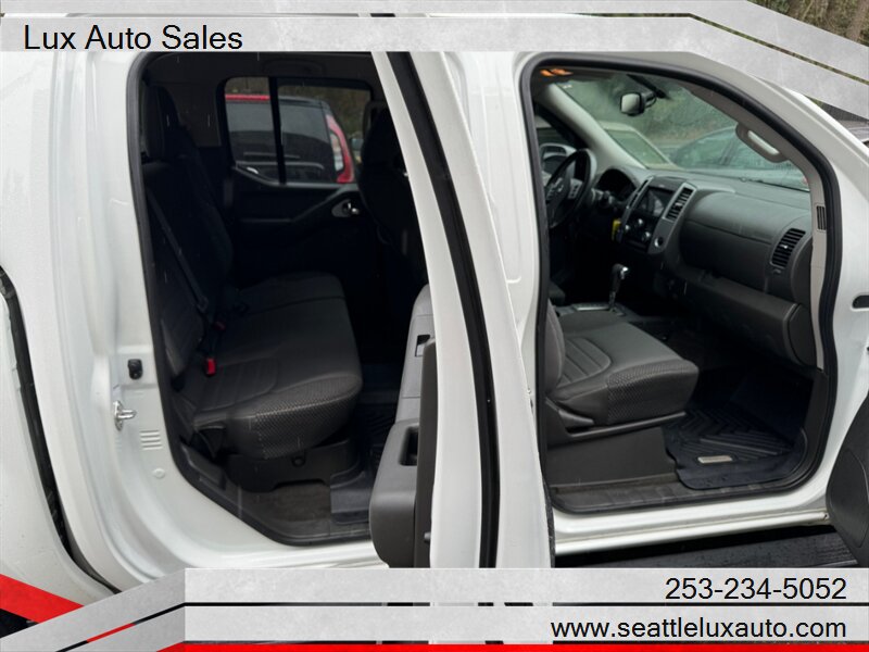Introducing the 2018 Nissan Frontier PRO-4X, a rugged and reliable mid-size pickup truck designed to handle both on and off-road adventures with ease. This particular model is presented in a striking White exterior, complemented by a comfortable Black cloth interior, creating a sophisticated yet durable ambiance for both driver and passengers.