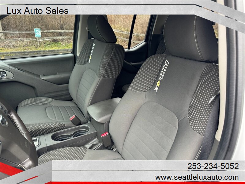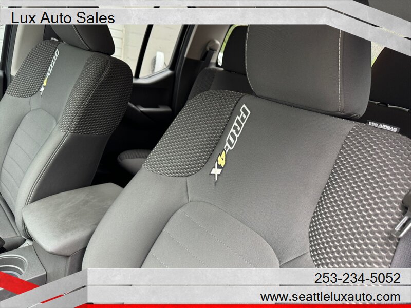 The 2018 Frontier PRO-4X is equipped with a variety of factory default features designed to enhance your driving experience. The exterior boasts a bold stance, featuring a chrome grille, fog lights, and distinctive PRO-4X badging. The truck is also outfitted with off-road tires and a skid plate, making it ready for exploration right off the lot.