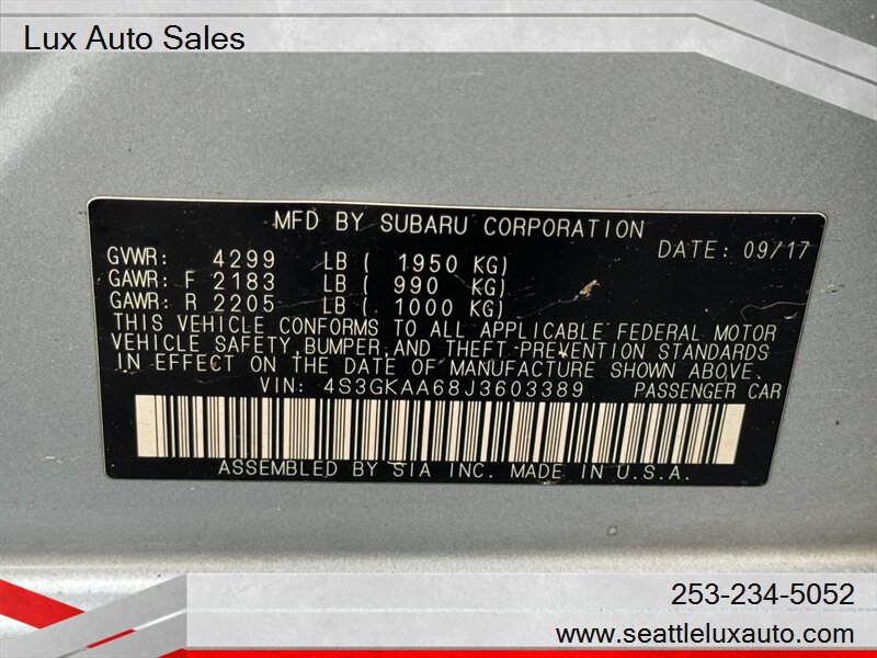 This 2018 Impreza 2.0i combines Subaru’s hallmark AWD capability, practical interior packaging and solid fuel economy. With a clean CARFAX and excellent overall condition, it represents a dependable, well-equipped compact that is ready for immediate use. Contact us to arrange an inspection or to confirm specific equipment and options for this vehicle.