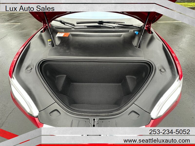 - Rearview camera, parking sensors, keyless entry/walk-away locking, front trunk (frunk) and power rear hatch